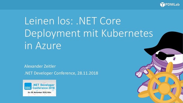 Microsoft MVP / ASP.NET 2004 - 2018 • ASP.NET Web API Advisor since 2011 • Microsoft Azure Advisor since 2014 • Organizer of Azure Meetup Karlsruhe • Using Docker since 2013 https://pdmlab.com [email protected] @lxztlr Leinen los: .NET Core Deployment mit Kubernetes in Azure 2