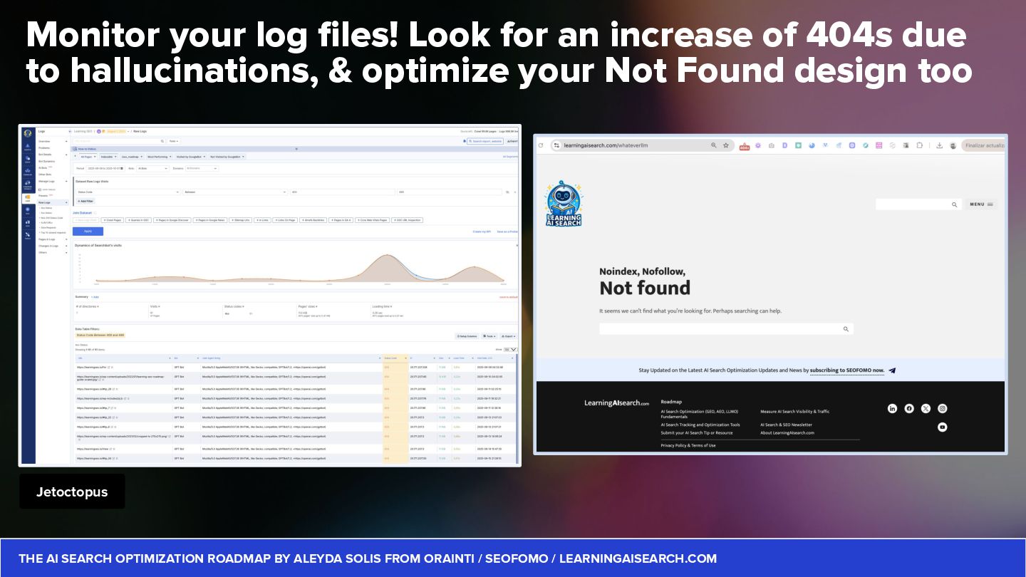 due to hallucinations, & optimize your Not Found design too Jetoctopus WINNING ECOMMERCE AI SEARCH BY ALEYDA SOLIS FROM ORAINTI / SEOFOMO / LEARNINGAISEARCH.COM THE AI SEARCH OPTIMIZATION ROADMAP BY ALEYDA SOLIS FROM ORAINTI / SEOFOMO / LEARNINGAISEARCH.COM