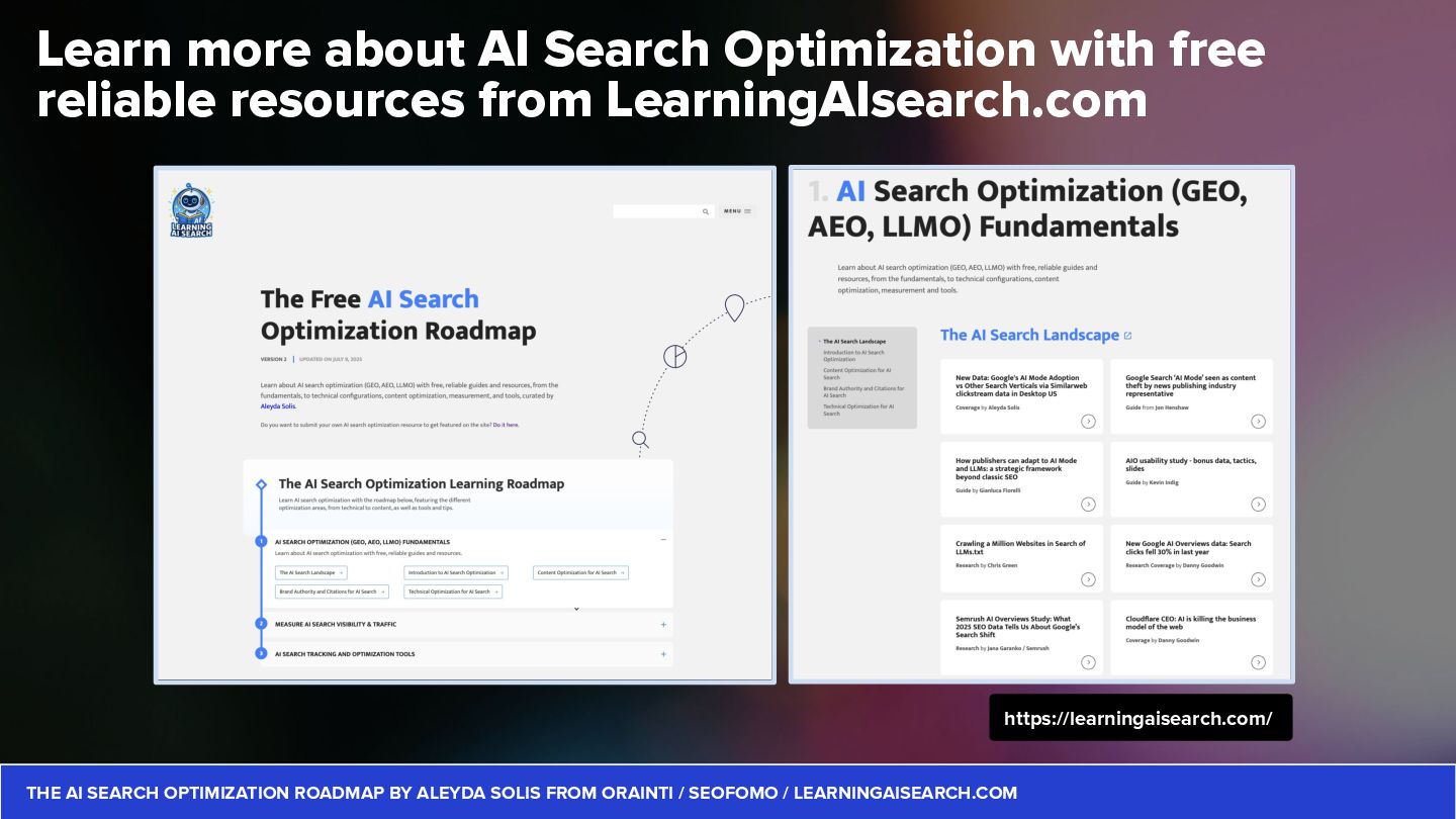 from LearningAIsearch.com https://learningaisearch.com/ WINNING ECOMMERCE AI SEARCH BY ALEYDA SOLIS FROM ORAINTI / SEOFOMO / LEARNINGAISEARCH.COM THE AI SEARCH OPTIMIZATION ROADMAP BY ALEYDA SOLIS FROM ORAINTI / SEOFOMO / LEARNINGAISEARCH.COM