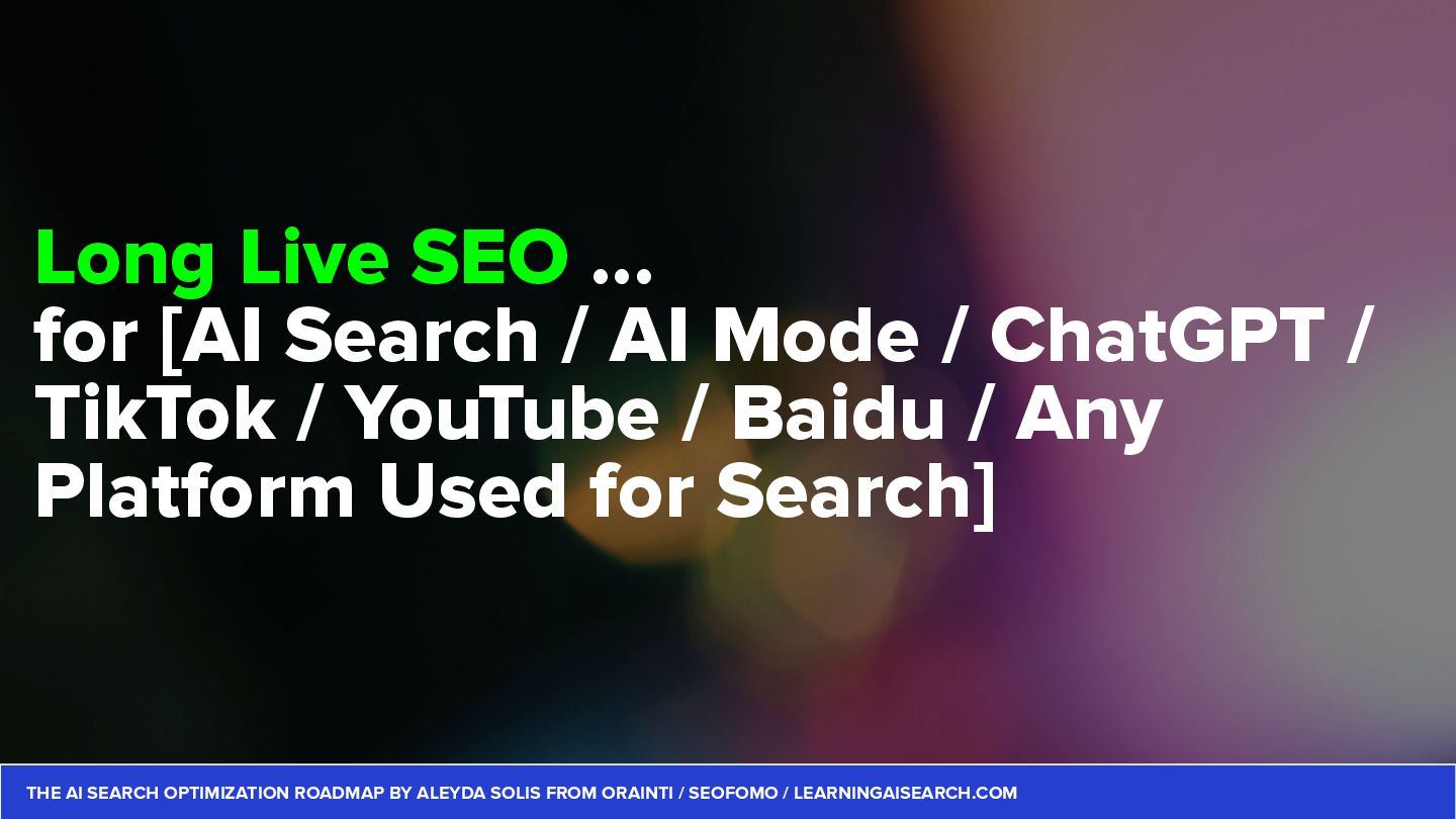 / ChatGPT / TikTok / YouTube / Baidu / Any Platform Used for Search] WINNING ECOMMERCE AI SEARCH BY ALEYDA SOLIS FROM ORAINTI / SEOFOMO / LEARNINGAISEARCH.COM THE AI SEARCH OPTIMIZATION ROADMAP BY ALEYDA SOLIS FROM ORAINTI / SEOFOMO / LEARNINGAISEARCH.COM