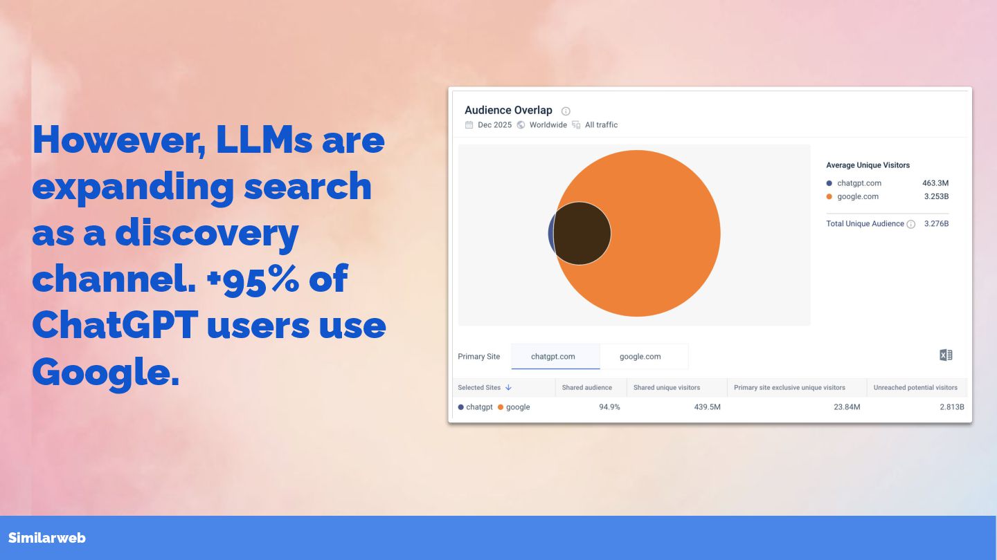 1. However, LLMs are expanding search as a discovery channel. +95%