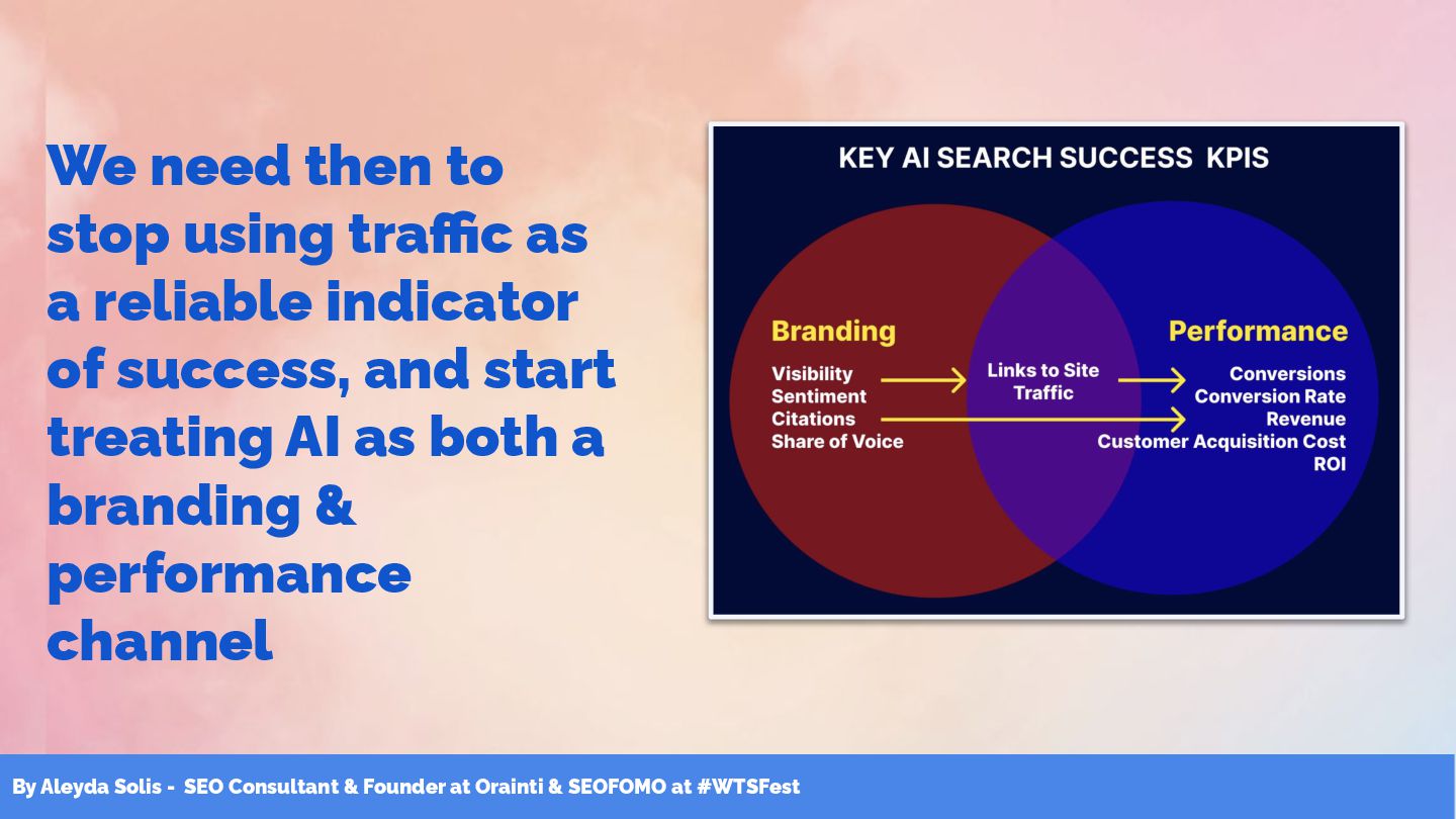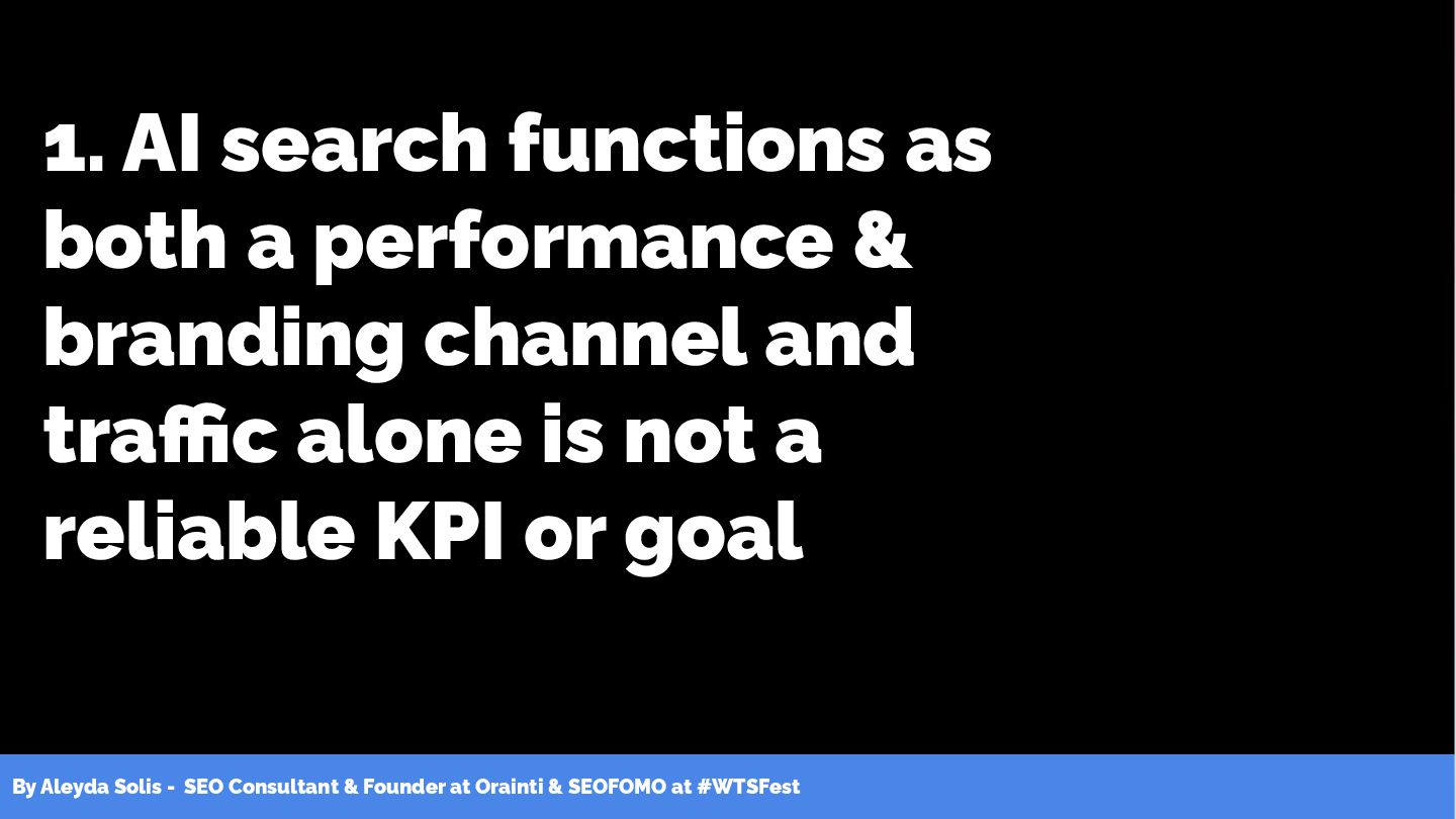 & SEOFOMO at #WTSFest 1. AI search functions as both a performance & branding channel and traffic alone is not a reliable KPI or goal