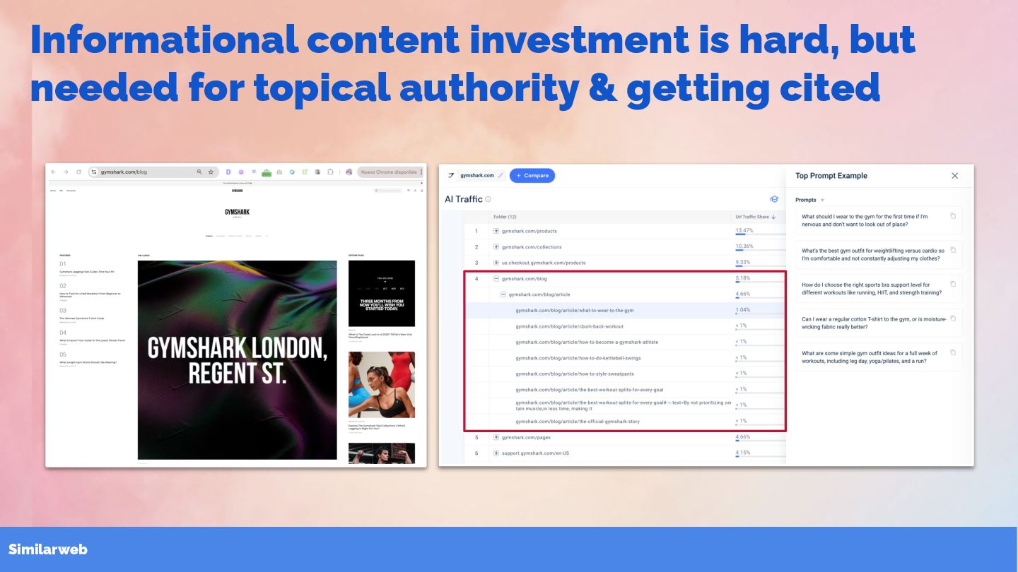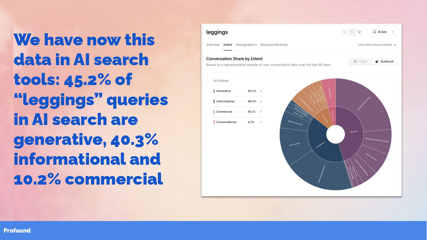 45.2% of “leggings” queries in AI search are generative, 40.3% informational and 10.2% commercial