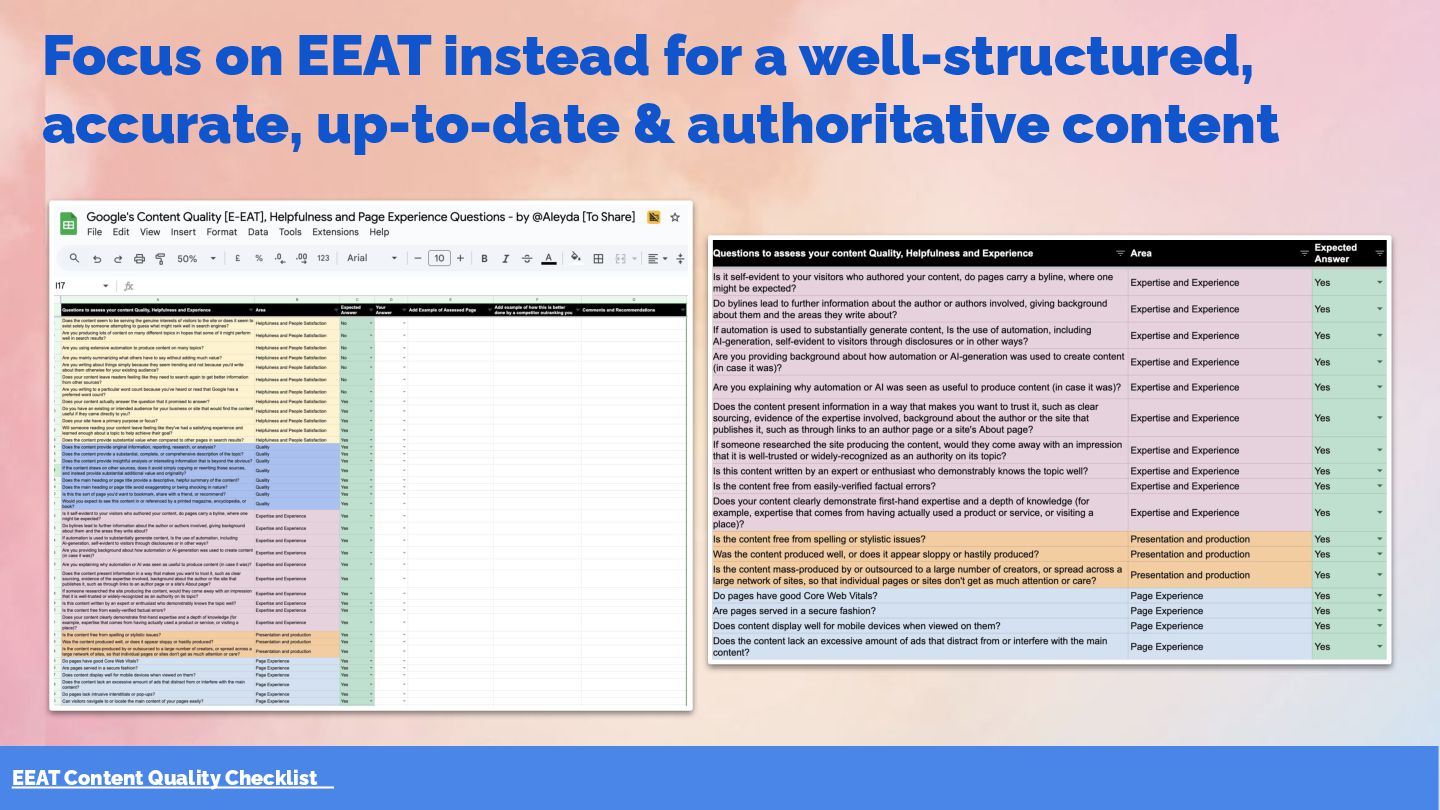 32. EEAT Content Quality Checklist Focus on EEAT instead for a