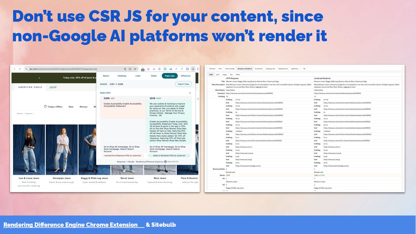 JS for your content, since non-Google AI platforms won’t render it
