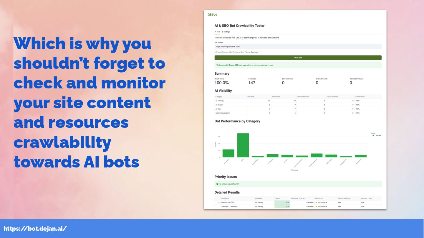 and monitor your site content and resources crawlability towards AI bots