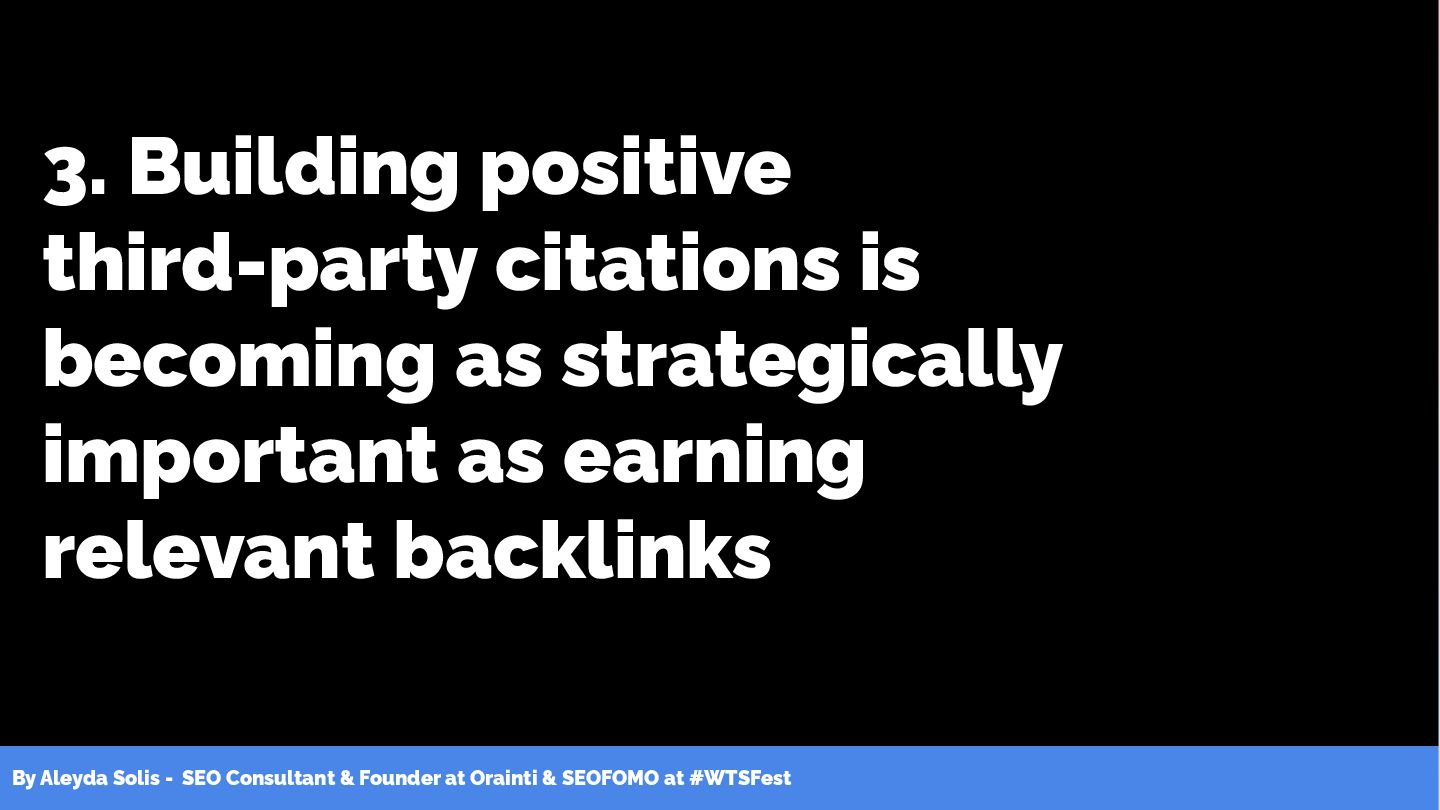 & SEOFOMO at #WTSFest 3. Building positive third-party citations is becoming as strategically important as earning relevant backlinks