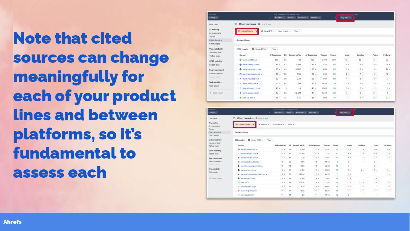 41. Ahrefs Note that cited sources can change meaningfully for each