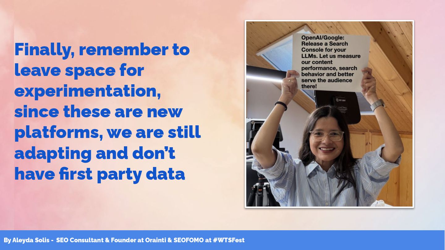 & SEOFOMO at #WTSFest Finally, remember to leave space for experimentation, since these are new platforms, we are still adapting and don’t have first party data