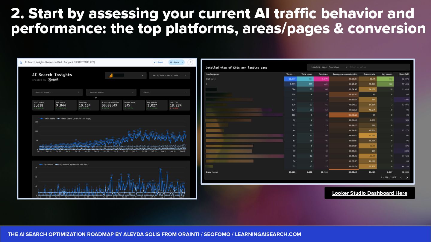 performance: the top platforms, areas/pages & conversion Looker Studio Dashboard Here WINNING ECOMMERCE AI SEARCH BY ALEYDA SOLIS FROM ORAINTI / SEOFOMO / LEARNINGAISEARCH.COM THE AI SEARCH OPTIMIZATION ROADMAP BY ALEYDA SOLIS FROM ORAINTI / SEOFOMO / LEARNINGAISEARCH.COM