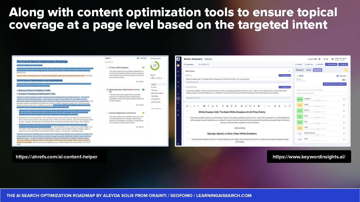 at a page level based on the targeted intent WINNING ECOMMERCE AI SEARCH BY ALEYDA SOLIS FROM ORAINTI / SEOFOMO / LEARNINGAISEARCH.COM THE AI SEARCH OPTIMIZATION ROADMAP BY ALEYDA SOLIS FROM ORAINTI / SEOFOMO / LEARNINGAISEARCH.COM https://ahrefs.com/ai-content-helper