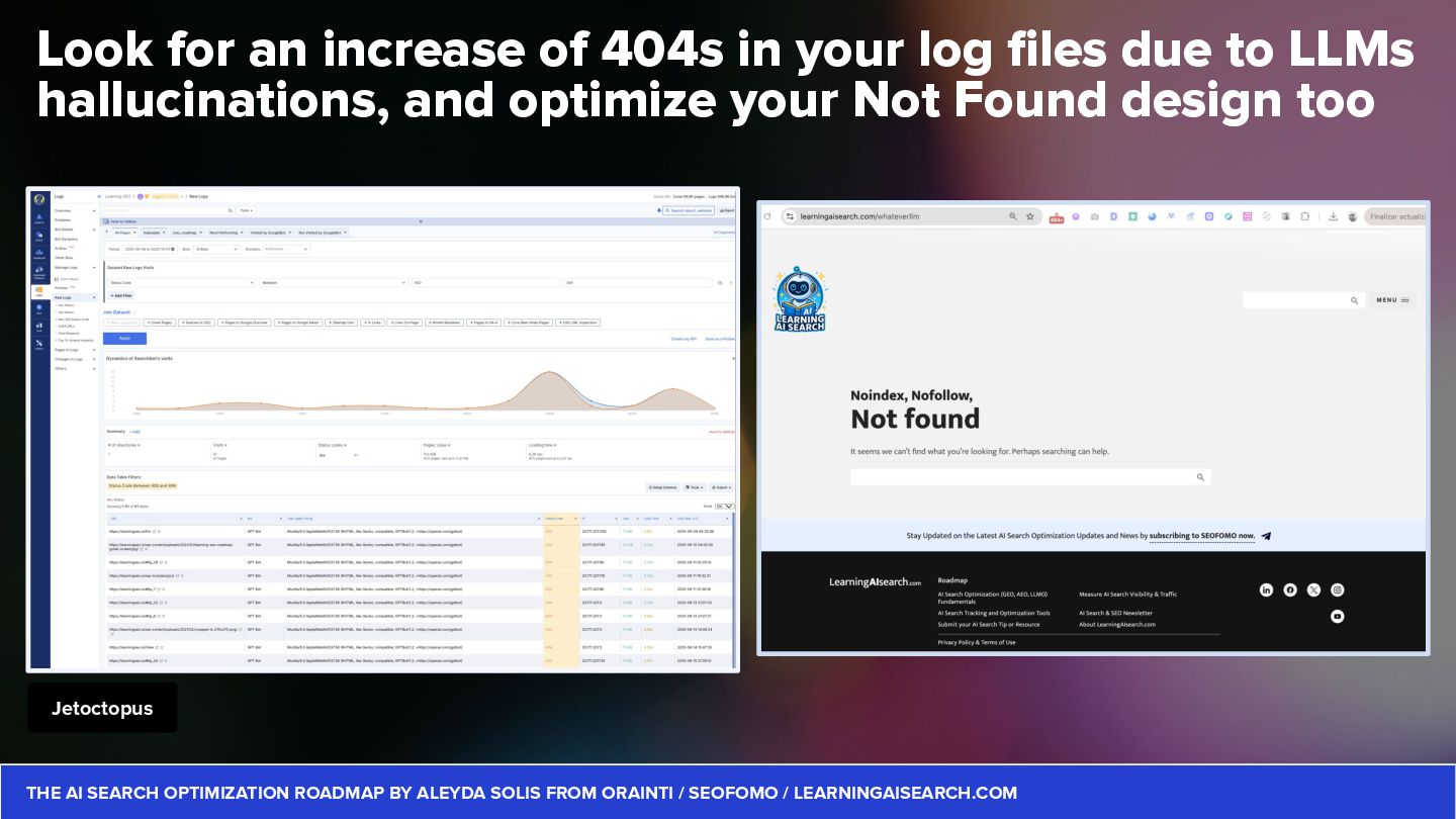 due to LLMs hallucinations, and optimize your Not Found design too Jetoctopus WINNING ECOMMERCE AI SEARCH BY ALEYDA SOLIS FROM ORAINTI / SEOFOMO / LEARNINGAISEARCH.COM THE AI SEARCH OPTIMIZATION ROADMAP BY ALEYDA SOLIS FROM ORAINTI / SEOFOMO / LEARNINGAISEARCH.COM