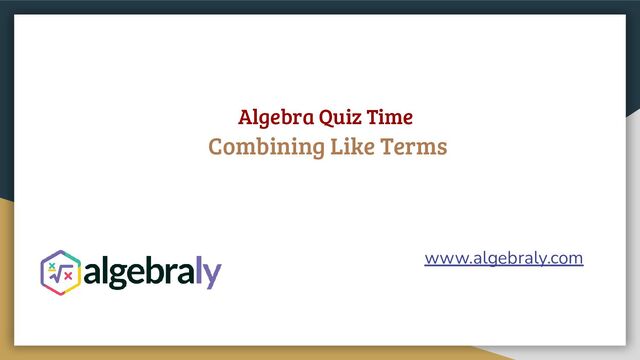 Put your algebra skills to the test with this quiz on combining like terms! Designed for Algebra 1 students, this presentation includes 10 carefully crafted questions to help you simplify algebraic expressions and enhance your math abilities. Perfect for classroom practice, self-assessment, or homework, this quiz will help you master one of the most important concepts in algebra.