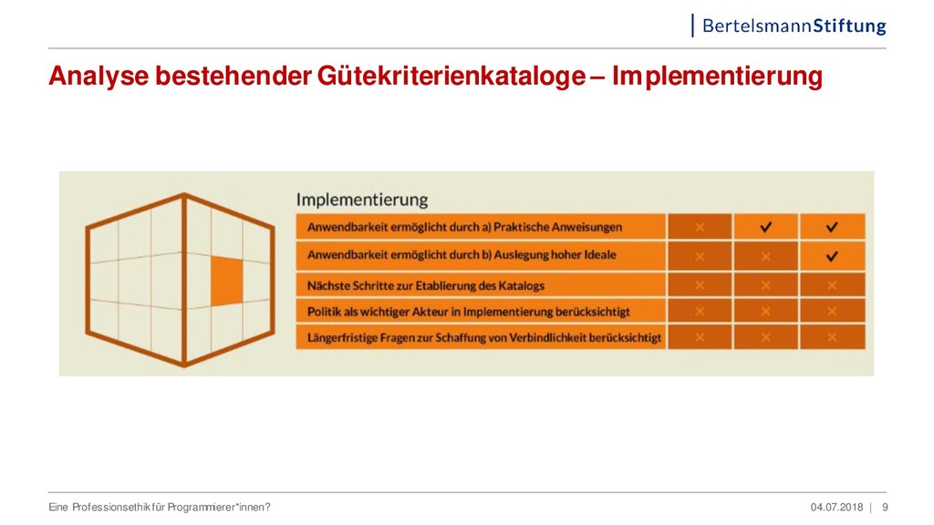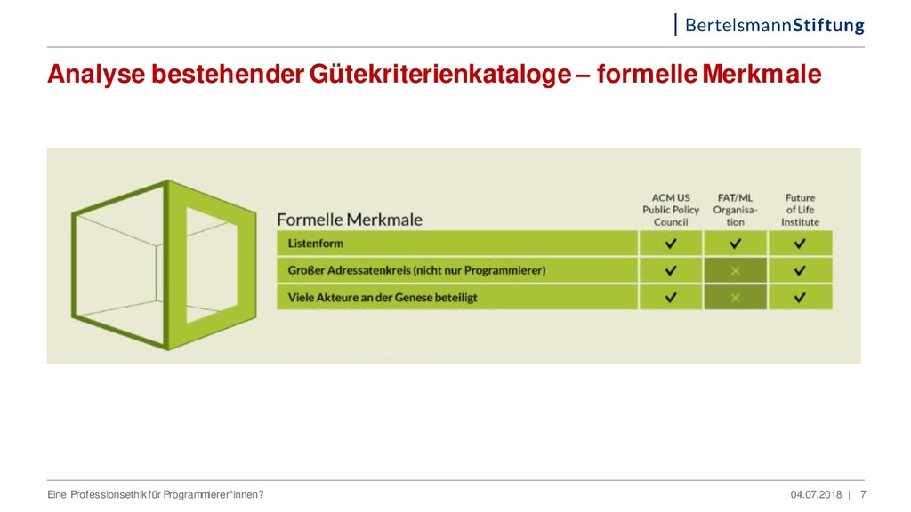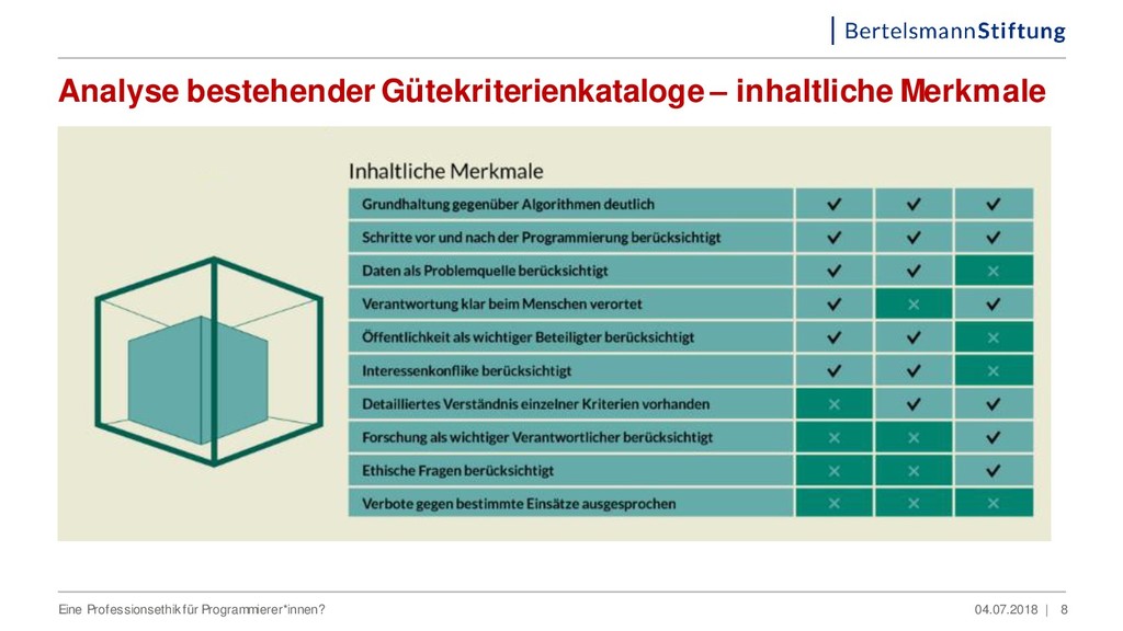 NICHT von Programmierer*innen getroffen Eine Professionsethik für Programmierer*innen greift zu kurz Eine Professionsethik für Programmierer*innen? 04.07.2018 | Wir brauchen eine prozessbezogene Professionsethik/ einen Gütekriterienkatalog für algorithmische Prozesse