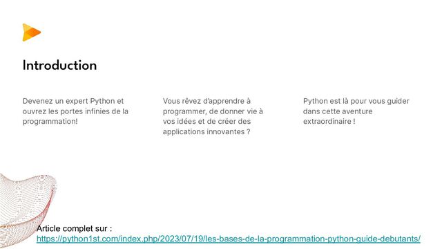Rejoignez-nous et explorez l'univers passionnant de Python ! Découvrez l'article complet sur notre site : Les Bases de la Programmation Python : Guide pour Débutants