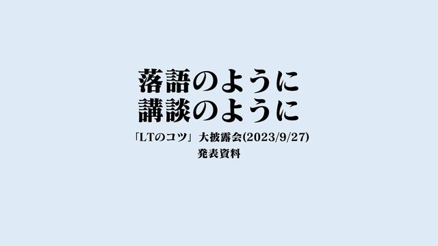 落語のように 講談のように 「LTのコツ」大披露会(2023/9/27) 発表資料