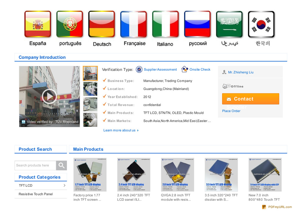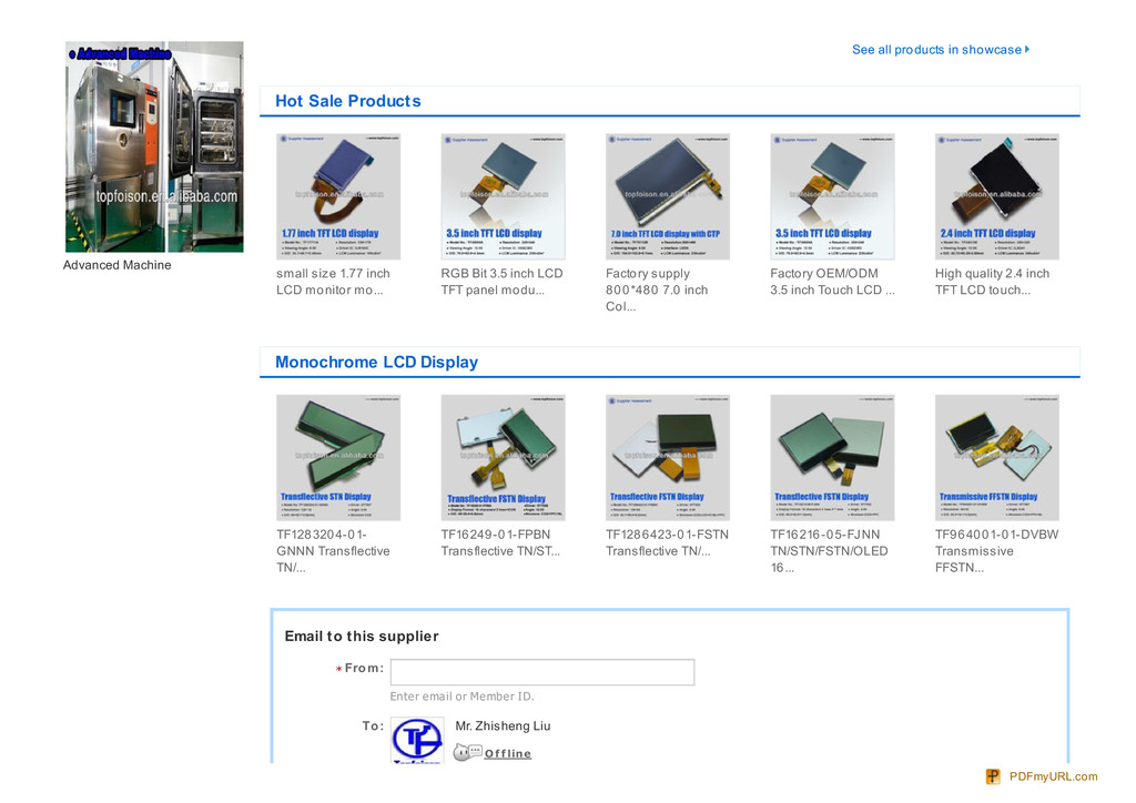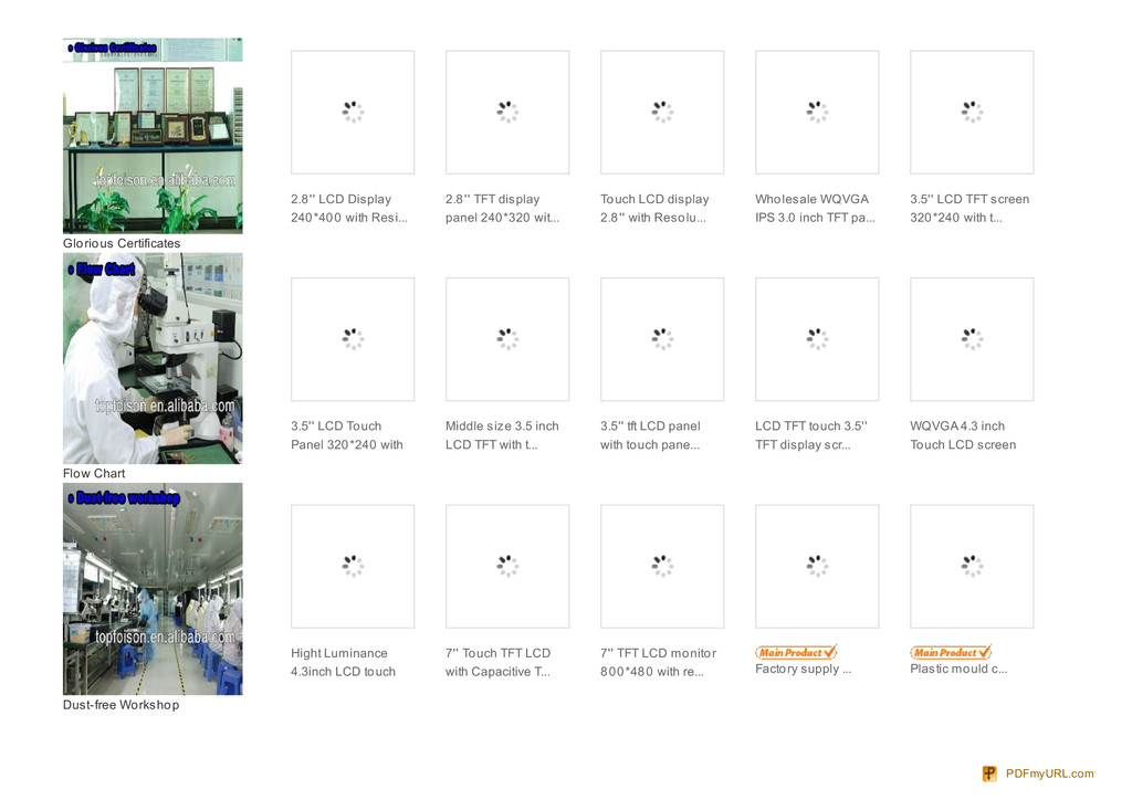 Shenzhen Topfoison Electronic Technology Co,LTD, we speciliazed in TFT LCD ,Resistive Touch Panel ,Capacitive Touch Panel ,TN/STN/FSTN/OLED ,Plastic Mould. The objective of our company is to be the first-class display service supplier,we are looking for more and more superior partners to create a brilliant success in display and mould field!