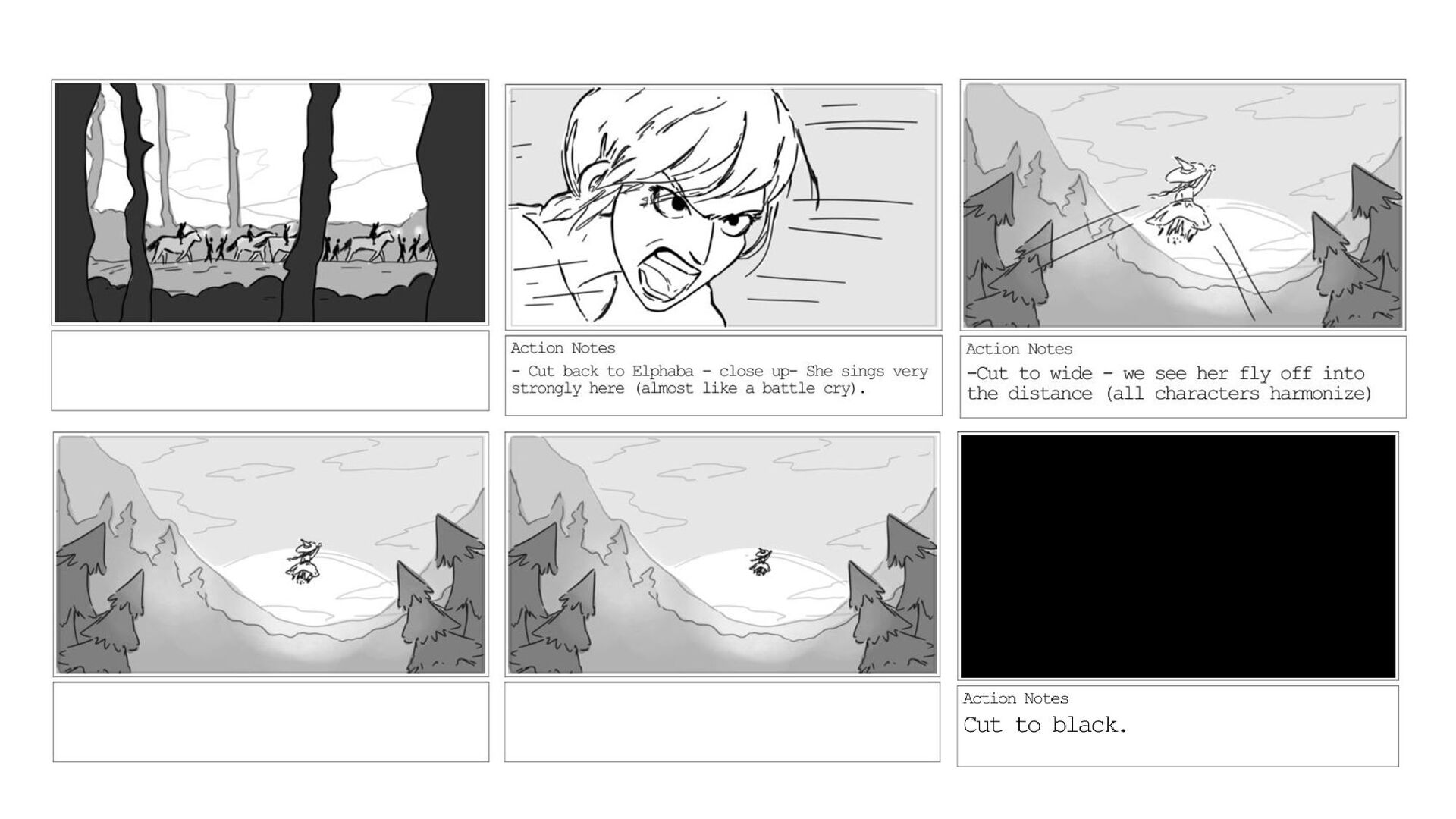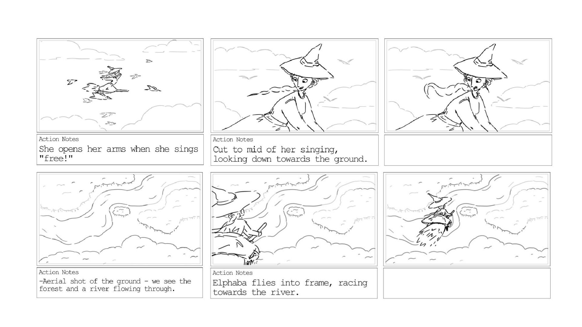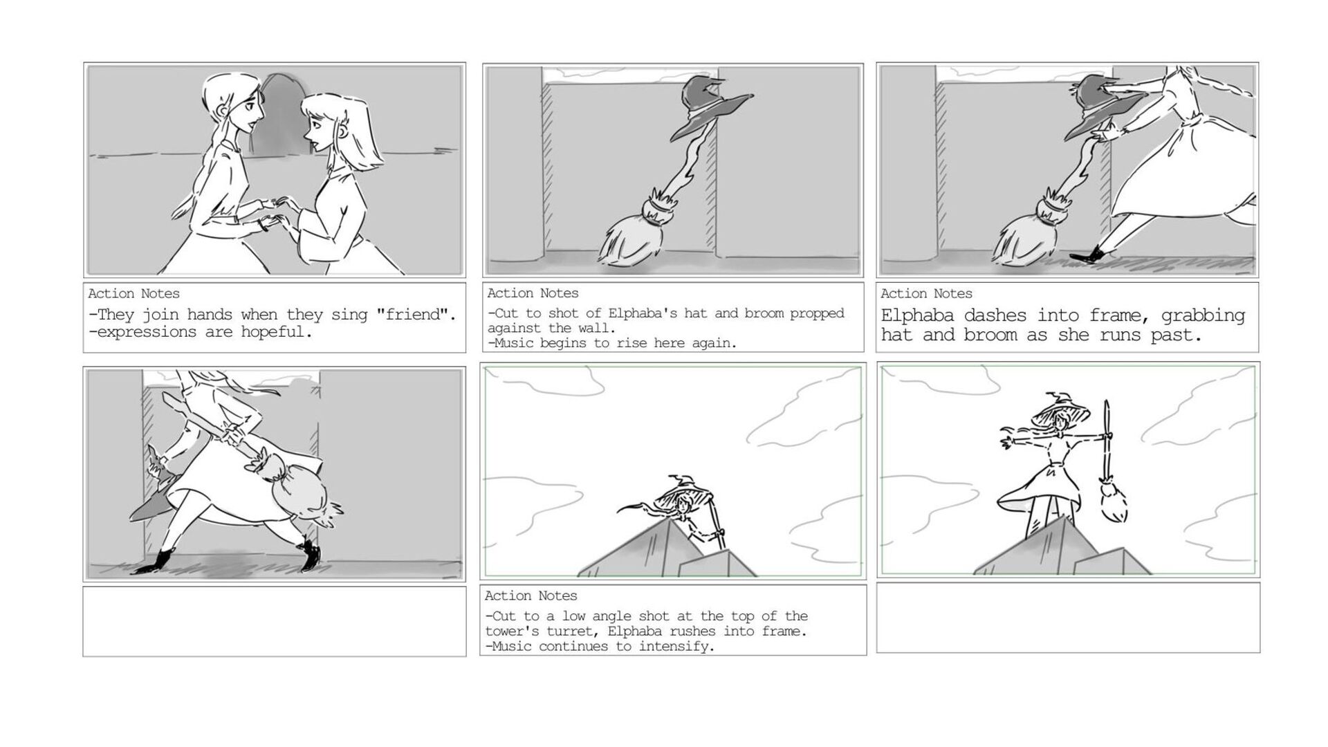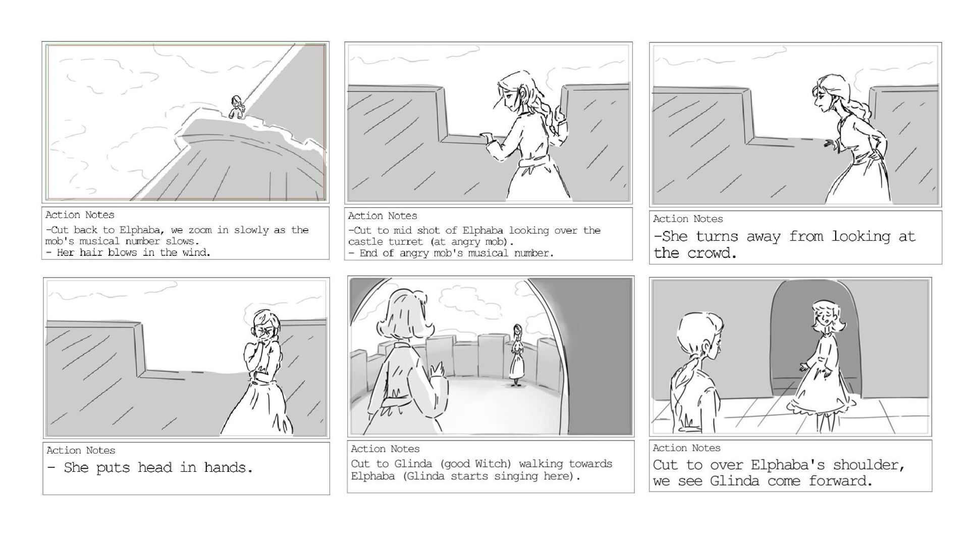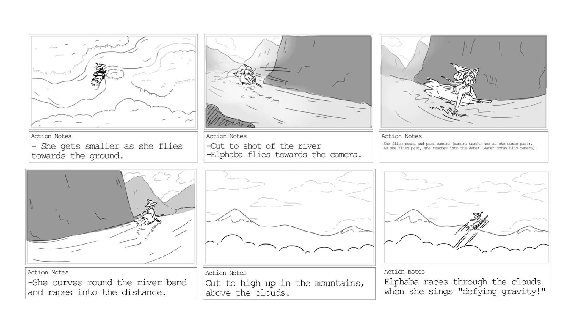 A storyboard based on the music, and characters, from the Broadway musical 'Wicked'.
