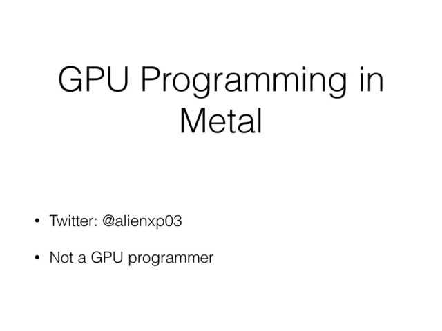 GPU Programming in Metal • Twitter: @alienxp03 • Not a