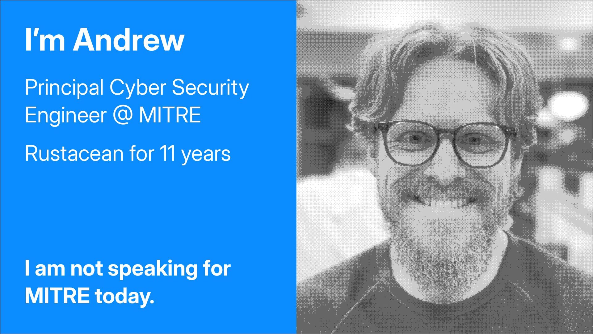 I’m Andrew Principal Cyber Security Engineer MITRE Rustacean for