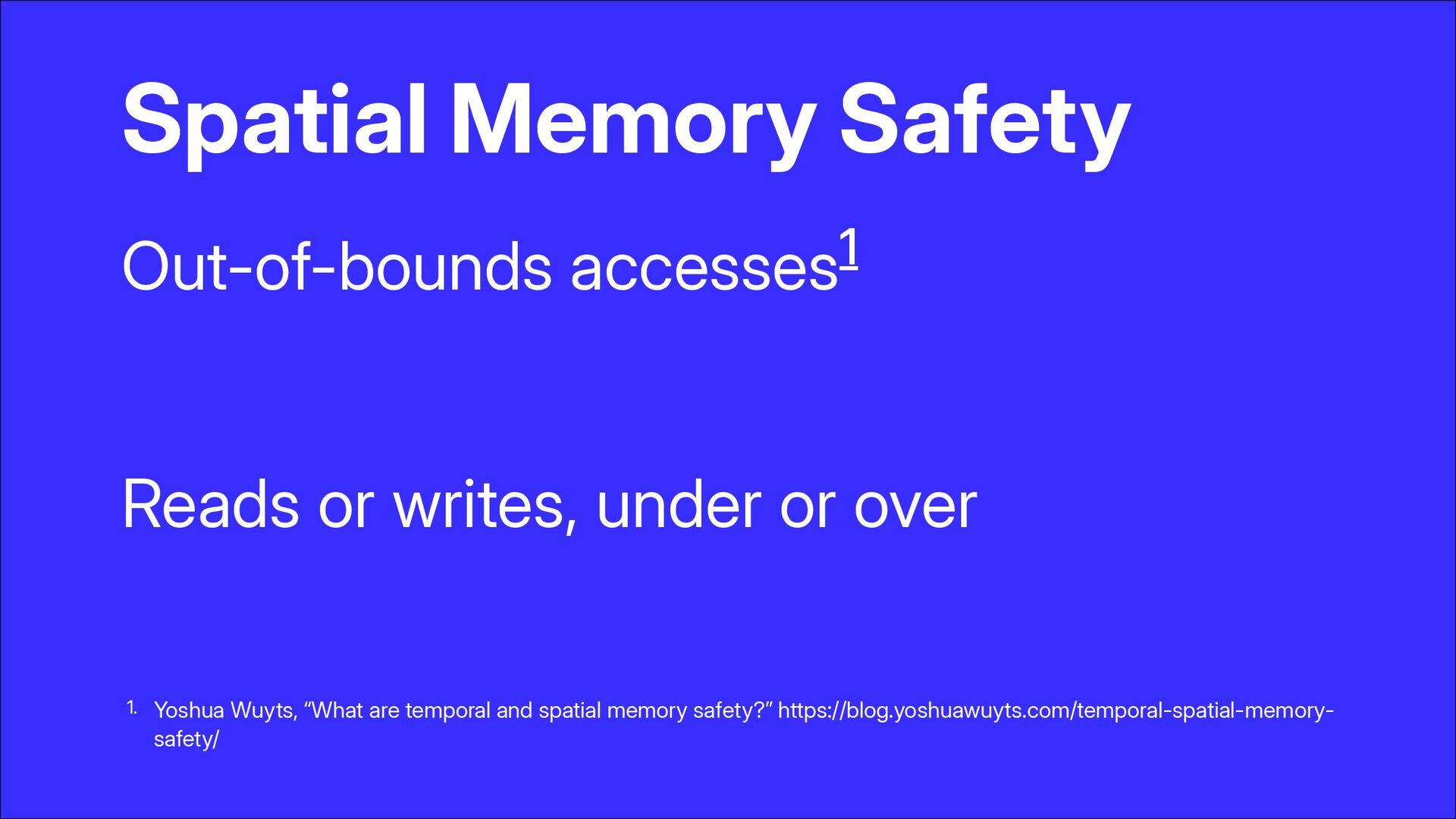 over 1 Yoshua Wuyts, “What are temporal and spatial memory safety?” https://blog.yoshuawuyts.com/temporal-spatial-memory- safety/ 1.