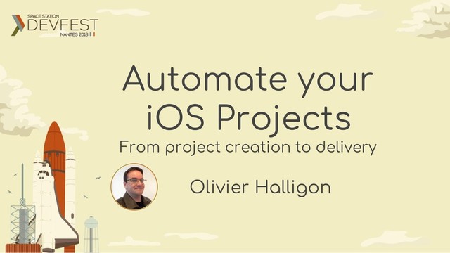 This is a conference I gave at DevFest Nantes to present an overview of all the tools available to automate all phases of an iOS project, from creation to delivery, and sharing generated assets and resources and code with Android along the way.