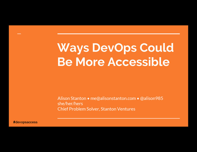 Invite a colleague to the next DevOps meetup with you Week 14 Publish a library or config file to make something easier Week 15 Talk about DevOps at a non DevOps meetup Week 16 Follow-up with the person you gave creds too. What questions do they have? #devopsaccess