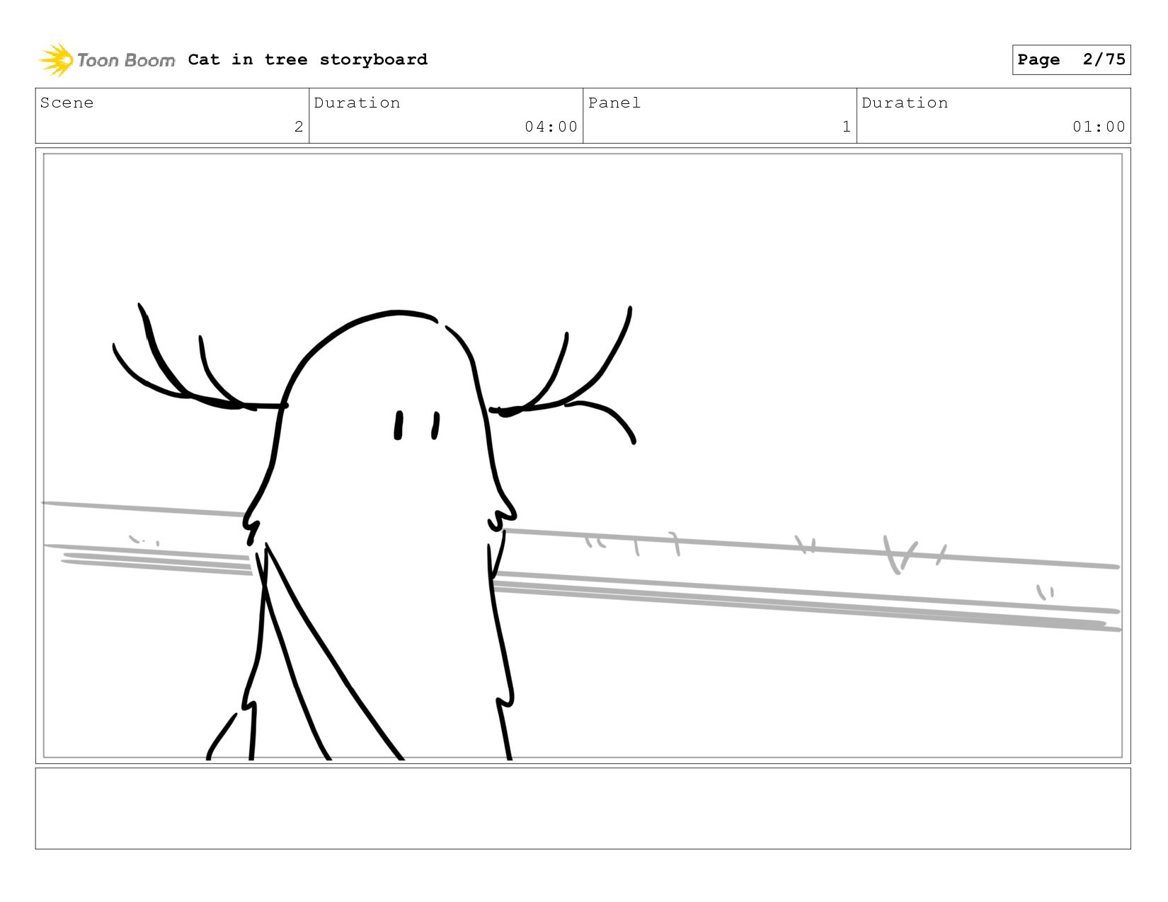 Scene 2 Duration 04:00 Panel 2 Duration 01:00 Cat in