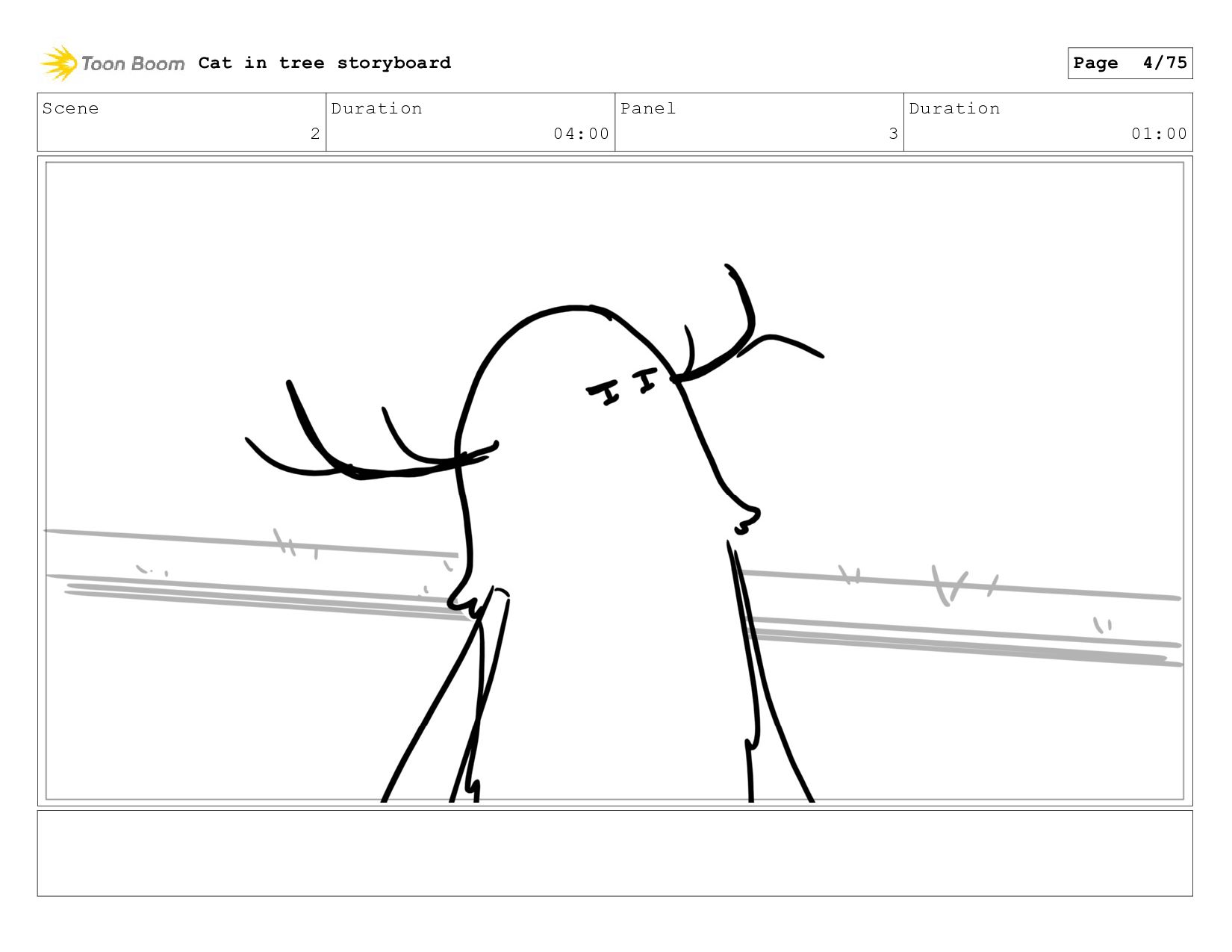 Scene 2 Duration 04:00 Panel 3 Duration 01:00 Cat in