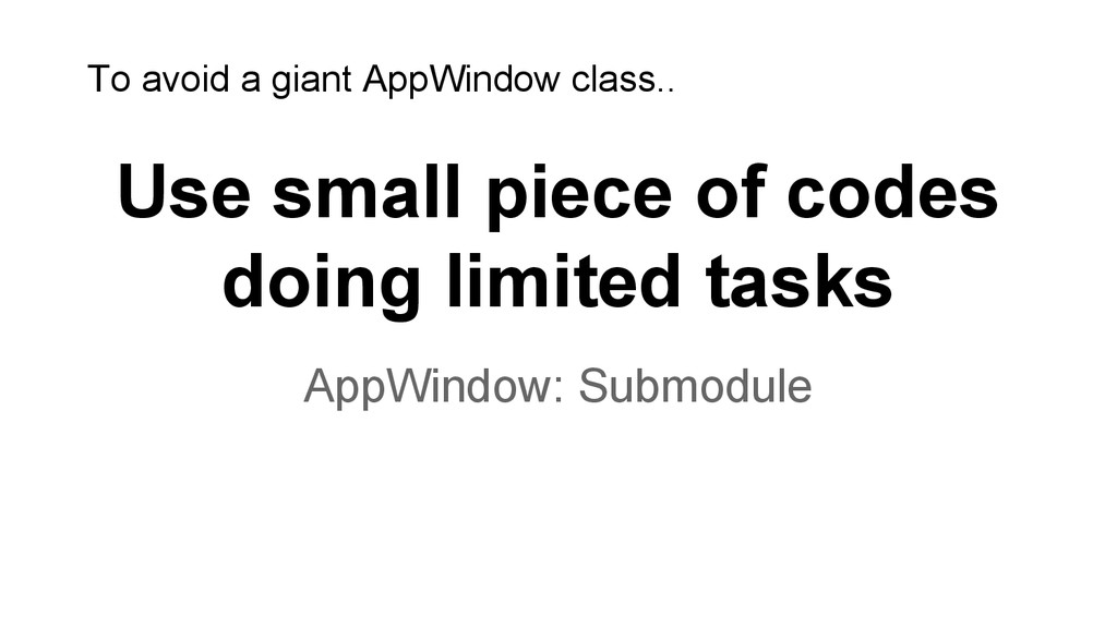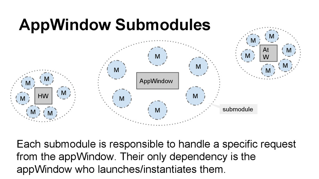 specific request from the appWindow. Their only dependency is the appWindow who launches/instantiates them. M M M M M M HW M M M M M M At W M M M M M M submodule