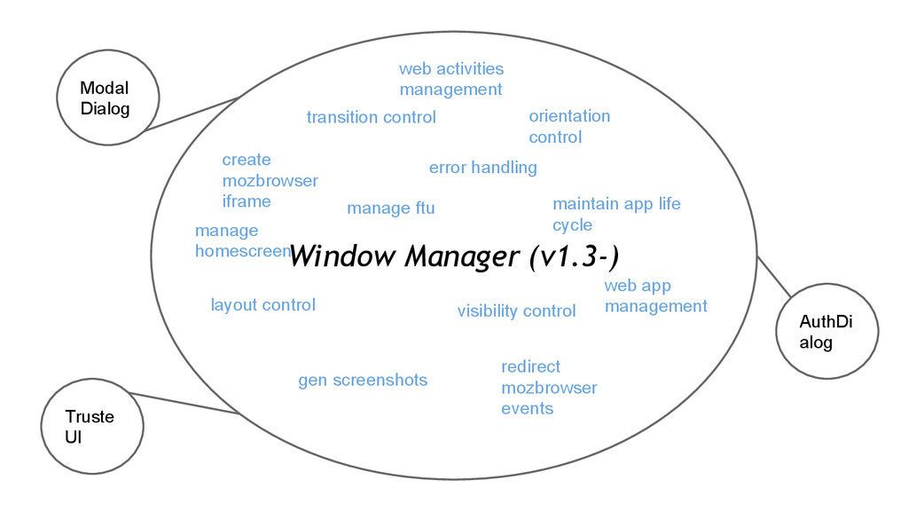 control create mozbrowser iframe maintain app life cycle gen screenshots redirect mozbrowser events orientation control layout control error handling visibility control web activities management web app management manage homescreen manage ftu