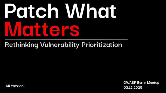 This talk introduces a risk-based prioritization framework that combines EPSS (Exploit Prediction Scoring), CISA's KEV catalog, and reachability analysis to focus on vulnerabilities that actually matter. Through technical deep-dives into SAST, SCA, and container scanning, attendees will learn: