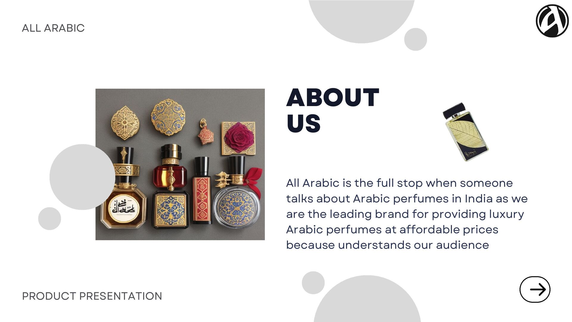 Spice up your life with All Arabic! From desert sands to bustling bazaars, our perfumes tell stories of Arabia, reimagined for India. Immerse yourself in oud's magic, dance with jasmine blooms, and discover luxury redefined. Embrace the East, one captivating scent at a time.