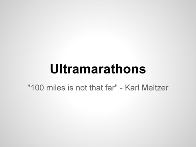 horse trail ride) on foot in 1974. First official Western States Endurance Run was in 1977. World's oldest 100 mile trail run. There have been other "ultra" distance races long before this, but this was kind of the start of the popularity boom
