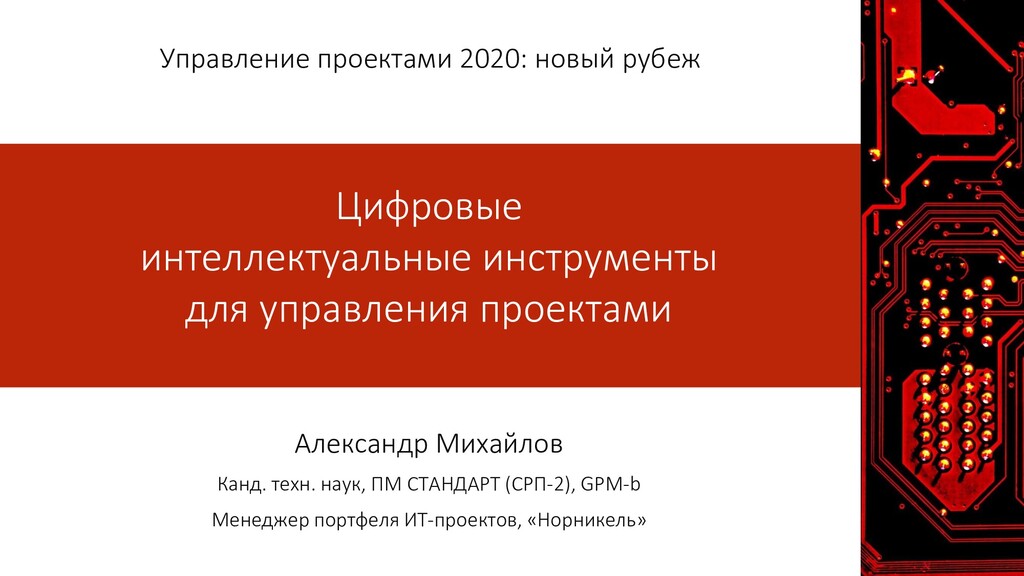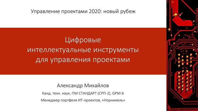 Презентация доклада к.т.н. Александра Михайлова на XV Международной конференции «Управление проектами 2020: новый рубеж» (ICPM 2020) на тему применения искусственного интеллекта в управлении проектами