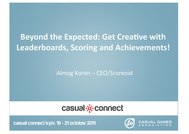 crea1vity • Achievements – Why? What to do and what not to do • Scoring – Go beyond the expected • In-‐game No3fica3ons – Connect with your players • Player Saves – Benefits and values • Geo Loca3on – Not seen o?en and new • Cross PlaMorm & Content Awareness • Game Mone3za3on Contented to Leaderboards