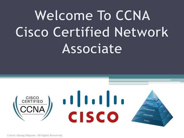 Fundamentals of IP – IPv4 & IPv6 TCP and UDP Cisco IOS Basics Switches Layer 2 Protocols – STP, VLANS, VTP, 802.1q Ethernet – IEEE 802.3 Cabling – UTP, STP, Coaxial, Optical Routers and routing Layer 3 Protocols – RIP, OSPF, EIGRP Network Protocols – HTTP, TELNET, SSH, NTP, SNMP, FTP Network Security and Access-Lists WAN Protocols – PPP, HDLC, Frame Relay, Wireless ©2012 Almog Ohayon. All rights Reserved.