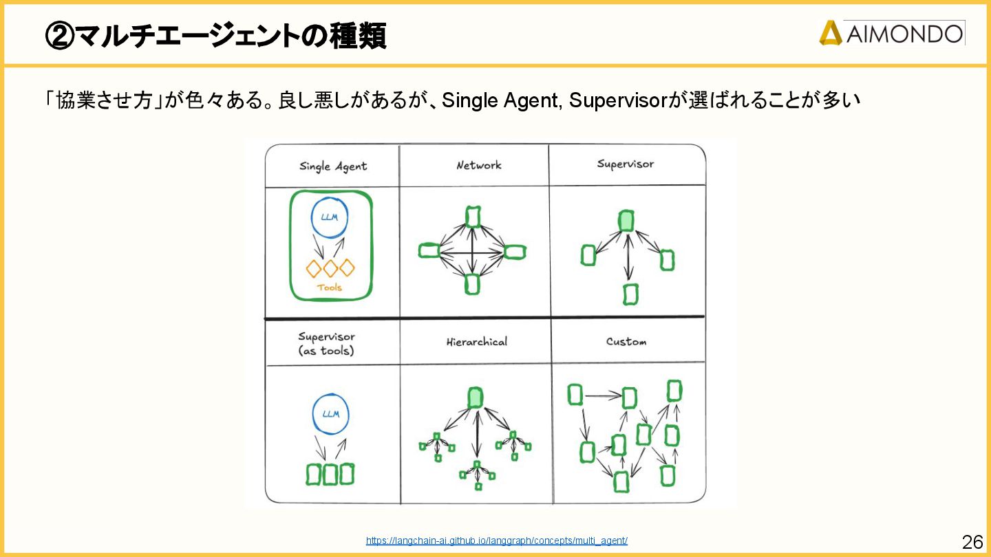confidential ②マルチエージェントの種類 26 「協業させ方」が色々ある。良し悪しがあるが、Single Agent, Supervisorが選ばれることが多い https://langchain-ai.github.io/langgraph/concepts/multi_agent/