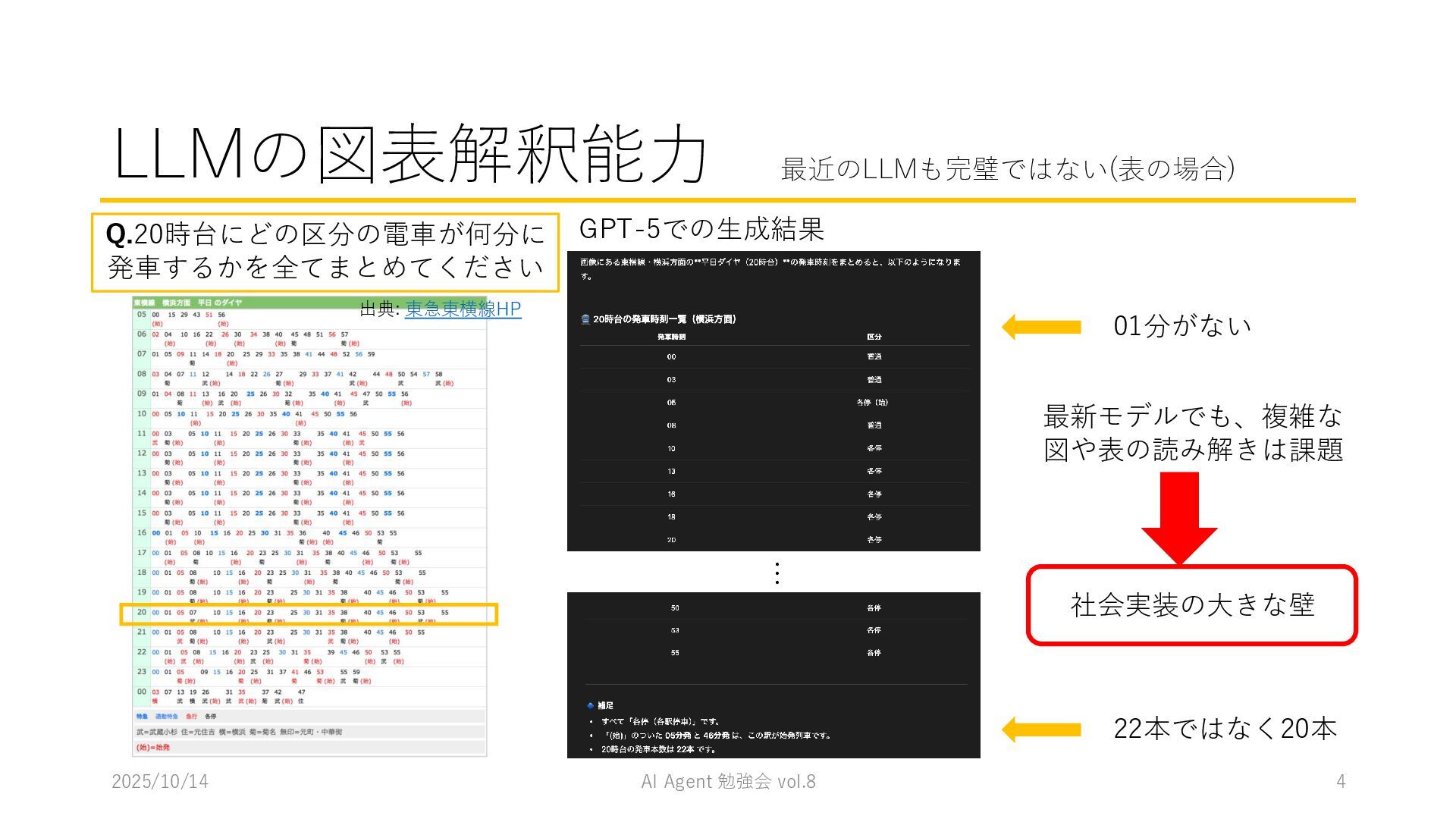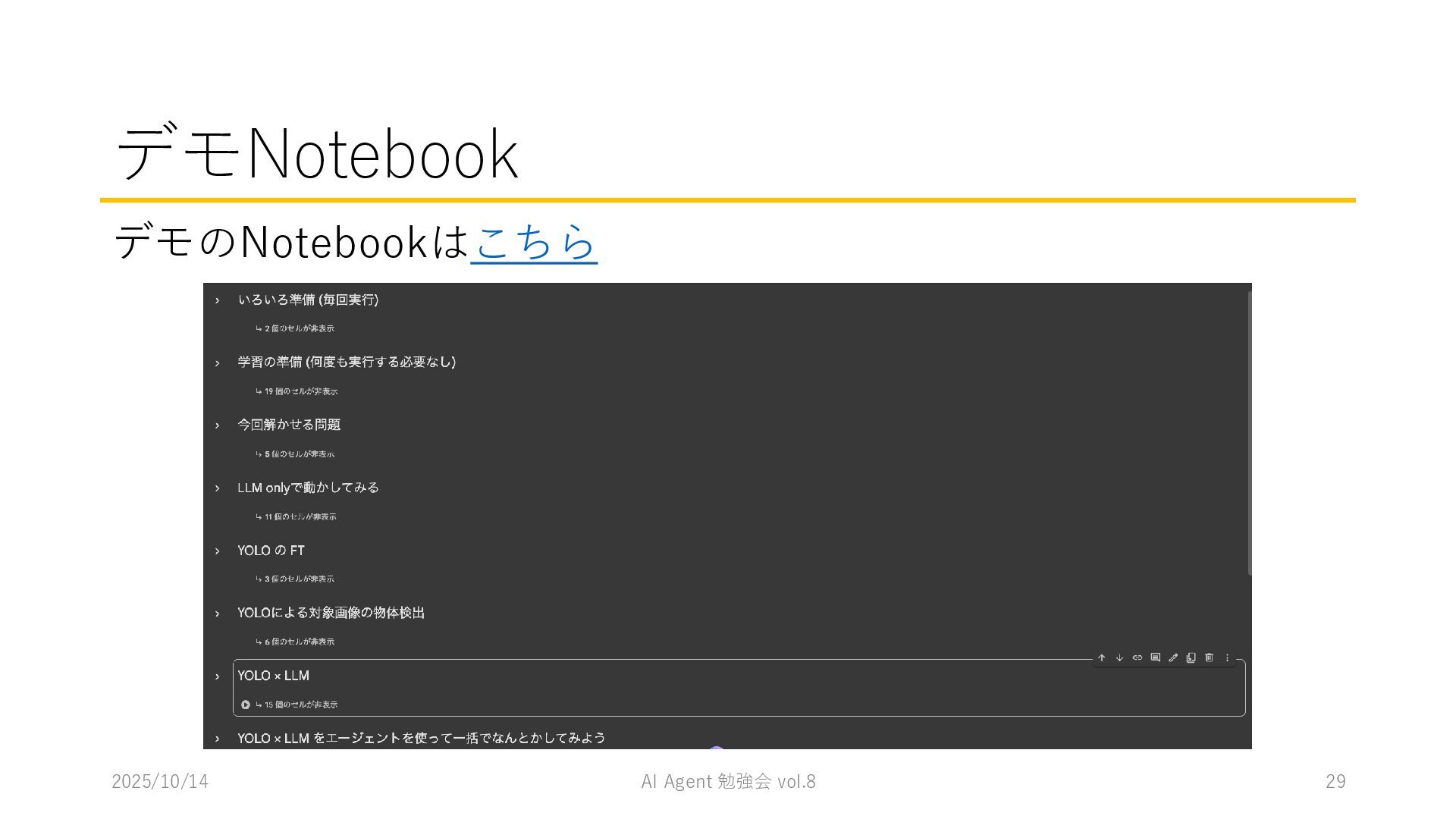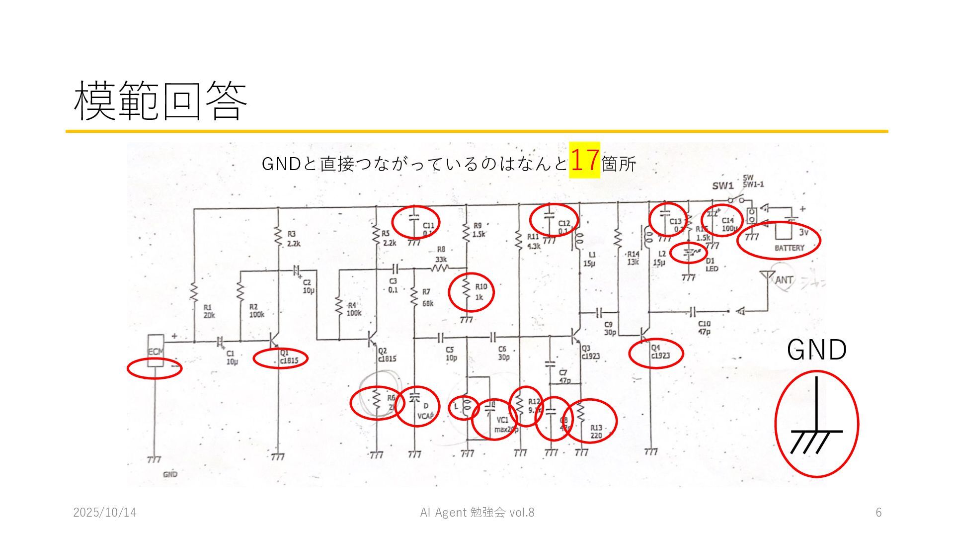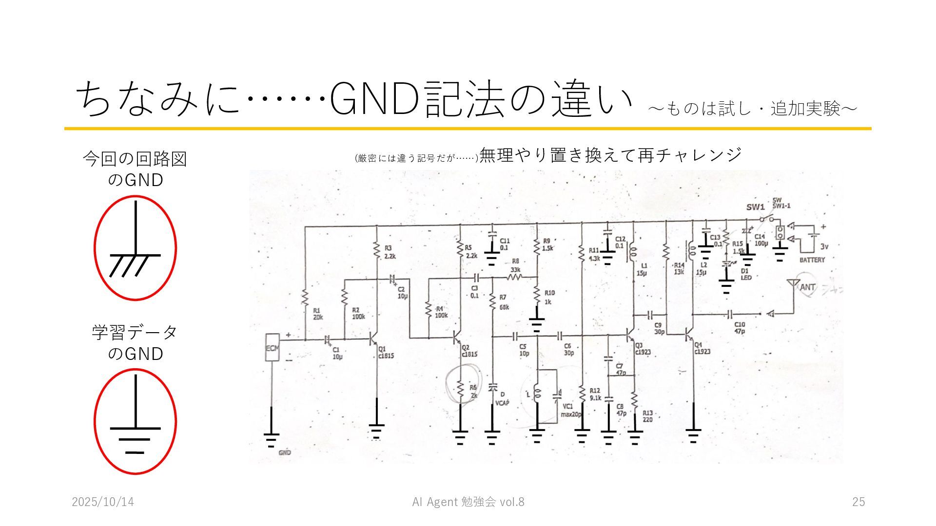 15 必要に応じて、以下の情報を用いてください。これらの情報を活用して、問題の最終的な答えを出してく ださい。 1. コンテナ内に、画像を物体検出した結果があります。(画像と、labels/には検出結果のテキストファ イルがあります。) 検出結果のテキストファイルは、「検出オブジェクトのラベルID,馬雲ディグボックスの左上のx座標,y座 標,バウンディングボックスの横幅,高さ」の形になっています。 2. オブジェクトのラベルIDは、以下のリストのインデックス(0始まり)になっています。 [ 'BJT-NPN', 'BJT-PNP', 'Capacitor', 'Diode', 'GND', 'I-AC', 'I-DC', 'Inductor', 'MOSFET-N', 'MOSFET-P', 'Op-Amp', 'Resistor', 'V-AC', 'V-DC', 'V-DC (one port)', 'Wire Crossover', 'Zener Diode' ] 問題を説明したプロンプトに、以下を追加してからAgent実行 1. 検出結果のディレクトリを圧縮して、Containers APIを用いて作成されたコンテナに格納 2. Response APIを呼び出す(一応Code Interpreterにしておいた) ※結果は前述の取り組みの結果と大差なく、 モデルによって性能が大きく揺れる印象