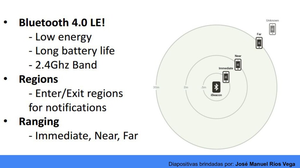 List<Beacon> beacons) { } @Override public void onExitedRegion(Region region) { } }); Diapositivas brindadas por: José Manuel Ríos Vega