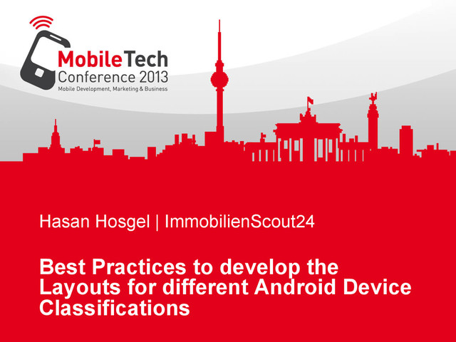Here you can experience the learnings, which the presenter got during development of the ImmobilienScout 24 Android application. The presentation doesn't cover Design, UX or Fragments, but it gives an introduction and samples of using different resources, in special layouts. These folders can be used for filtering specific configurations, referencing other resources and using layout aliases. This session aims at people with knowledge of coding for Android.