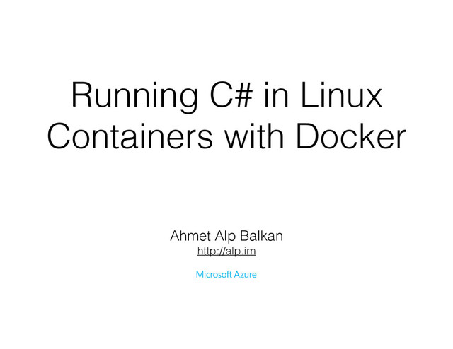 Running C# in Linux Containers with Docker Ahmet Alp Balkan