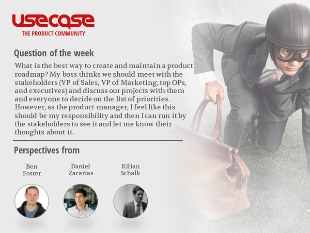 What is the best way to create and maintain a Product Roadmap? My boss thinks we should meet with the stakeholders (VP of Sales, VP of Marketing, top OPs, and executives) and discuss our projects with them and everyone to decide on the list of priorities. However, as the product manager, I feel like this should be my responsibility and then I can run it by the stakeholders to see it and let me know their thoughts about it.