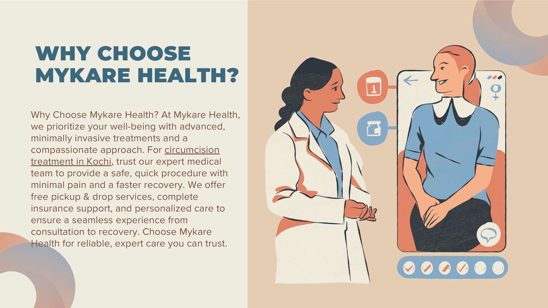 Experience the health advantages of circumcision, including a lower risk of infections and penile cancer, with Mykare Health in Kochi. Our advanced, minimally invasive procedures ensure minimal pain and a swift recovery. Benefit from free pickup & drop services, complete insurance support, and personalized care. Trust Mykare Health for top-quality circumcision treatment.