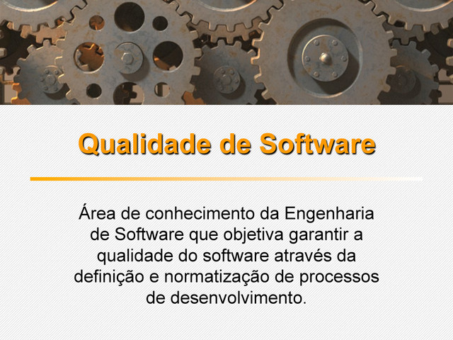 Área de conhecimento da Engenharia de Software que objetiva garantir a qualidade do software através da definição e normatização de processos de desenvolvimento.