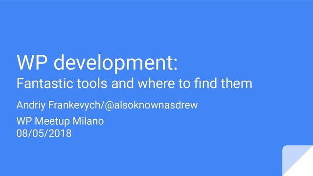 stack (https://github.com/alsoknownasdrew/vagrant-l amp) and wp cli for local development 2. wp-cli.yml My environment variables for local, stage and production envs 3. setup.sh • Creates a new user and database • wp cli commands for installing core, create config.php, scaffold _s • Loop through a basic array with list of plugins and run ‘wp plugin install’ and ‘wp plugin activate’ for each of them 4. Run ‘Vagrant up’ and go grab a coffee