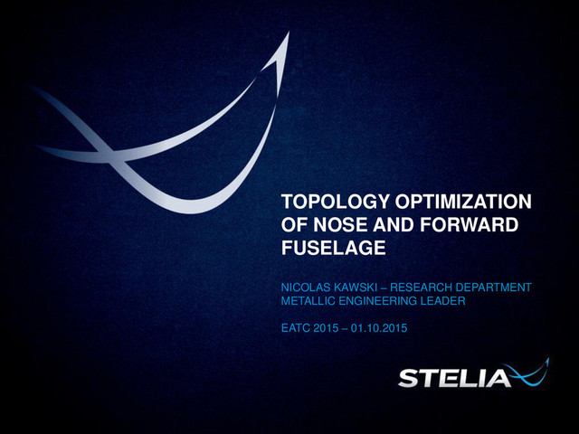 In order to support its customers and introduce more innovation into its products, STELIA Aerospace invests in new fields of research & technology through radical evolutions of developing airframes. Thus, STELIA Aerospace aims at adding topology optimization as a new technology brick to its development process, in order to increase the number of potential configurations for a given aircraft section and consequently dramatically reducing the weight and cost of an aerostructure.