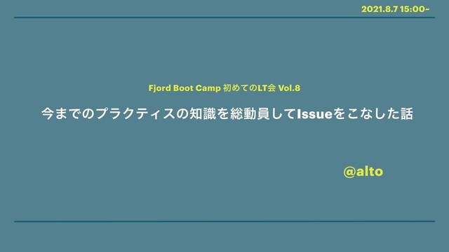 2021.8.7 15:00~ ࠓ·ͰͷϓϥΫςΟεͷࣝΛ૯ಈһͯ͠IssueΛ͜ͳͨ͠ Fjord Boot Camp ॳΊͯͷLTձ Vol.8 @alto