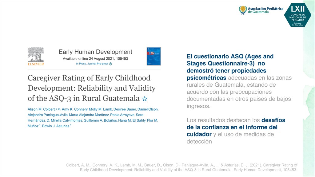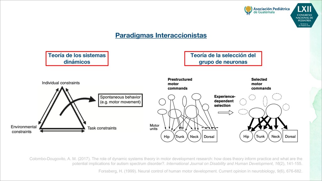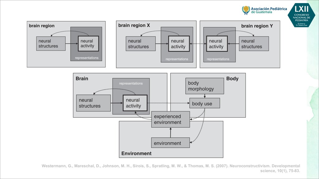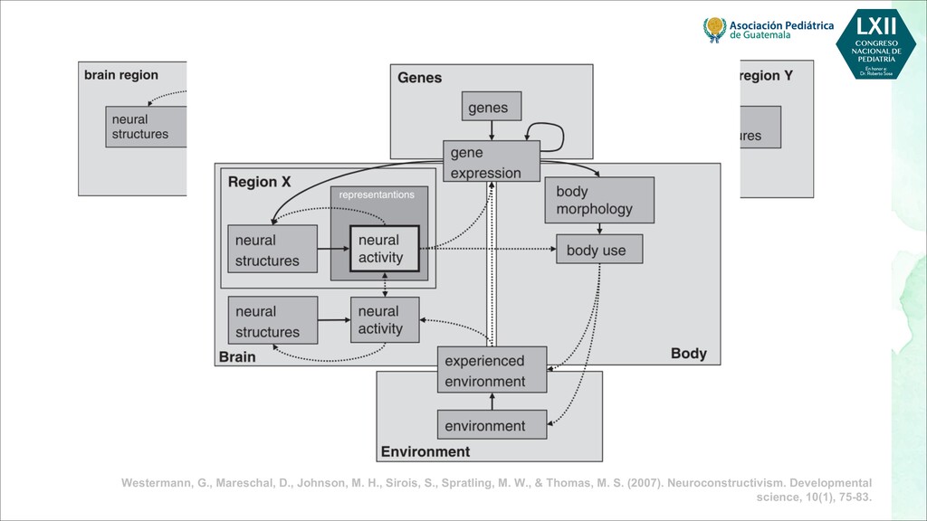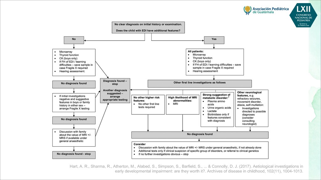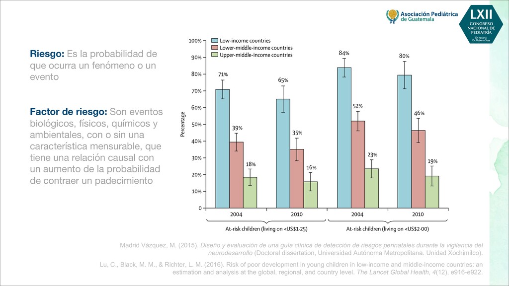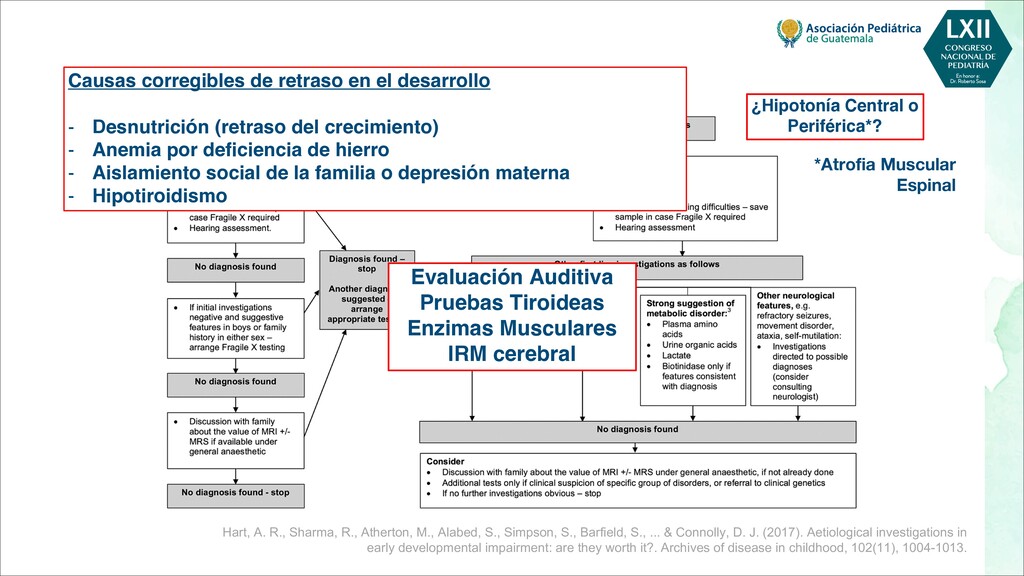 maternas tempranas, como rubéola, toxoplasma, citomegalovirus - Infecciones maternas tardías, como varicela, malaria, VIH - Toxinas, por ejemplo, alcohol, pesticidas, radiación, tabaquismo. - Fármacos, por ejemplo, citotóxicos, antiepilépticos POSTNATALES - Infecciones, por ejemplo, meningitis, encefalitis, citomegalovirus - Trastornos metabólicos, como hipoglucemia, hiponatremia o hipernatremia, deshidratación - Toxinas, por ejemplo, plomo, mercurio, arsénico, compuestos orgánicos clorados, disolventes - Traumatismo, especialmente traumatismo craneoencefálico - Severa deficiencia de estimulación, maltrato o violencia doméstica - Desnutrición, especialmente deficiencia de hierro, ácido fólico y vitamina D - Trastornos de salud mental materna, más comúnmente depresión Bellman, M., Byrne, O., & Sege, R. (2013). Developmental assessment of children. Bmj, 346.