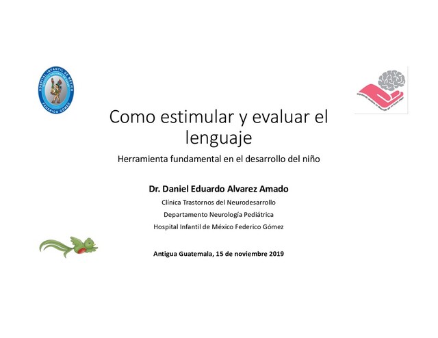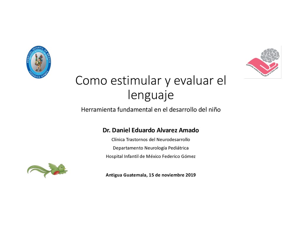 Neurología Pediátrica Hospital Infantil de México Federico Gómez Como estimular y evaluar el lenguaje Herramienta fundamental en el desarrollo del niño Antigua Guatemala, 15 de noviembre 2019
